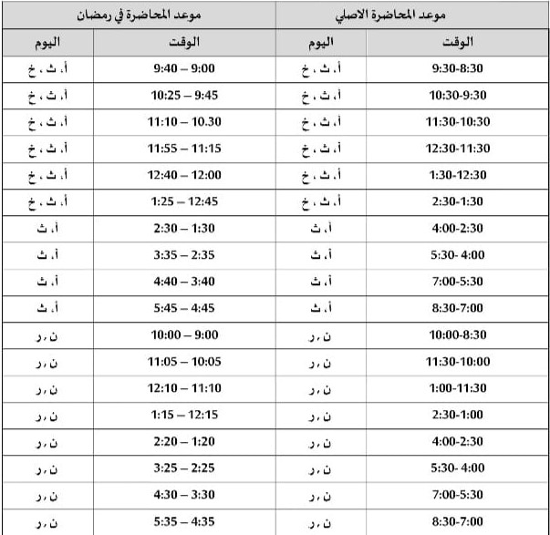 طلبتنا الاعزاء نبارك لكم شهر رمضان الفضيل ونعلن لكم عن مواعيد المحاضرات خلاله، تقبل الله طاعاتكم