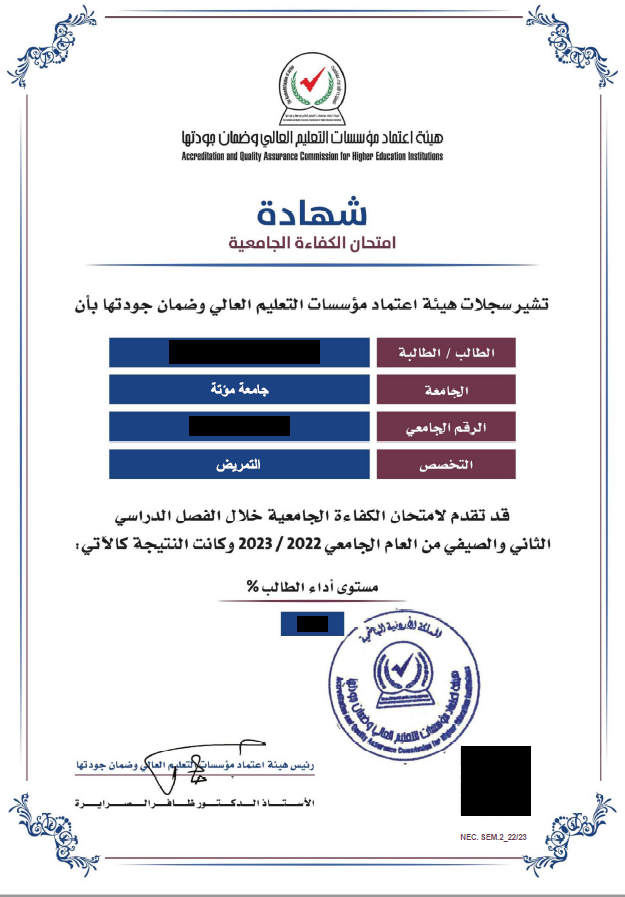 اعـــلان هـــام للطلبة – امتحان الكفاءة الجامعية على الفصل الدراسي الثاني والصيفي من العام الجامعي 2023/2024