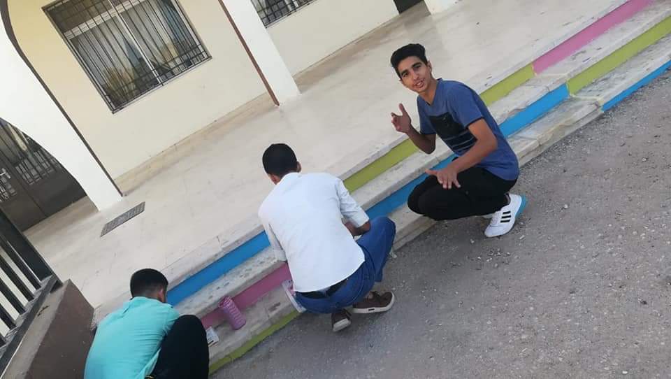 تطوع من الطلبة في اعمال صيانة المدرسة